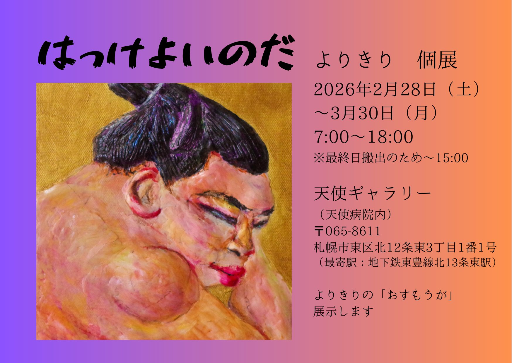 HOME > トピックス > <天使ギャラリー>"よりきり 個展 「はっけよいのだ」"始まります(2/28~)